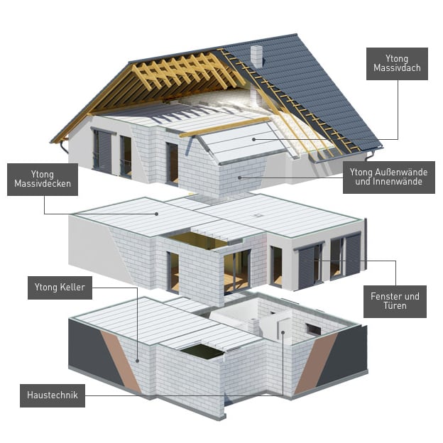So sieht ein fertiges Ytong- Massivdach aus. Später wird auf der Decke noch eine zusätzliche mineralische Dämmung verlegt und ein Stauraum mit einer Lagerfläche aus OSB-Platten mit ca. 15 m² geschaffen. Hierdurch wird ein kleiner Dachboden für die Bauherren geschaffen.